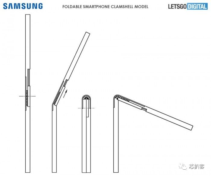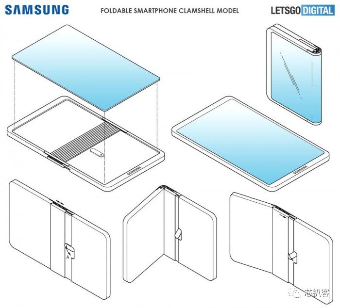三星Galaxy Fold的翻折将屏幕折叠到内部,表示可以更好的保护屏幕免受外部影响。但是在这个设计专利中,屏幕是往外翻折的,外媒推测可能是由于采用紧凑型机身,希望在不打开手机的情况下就提供交互,显示通知等相关内容。